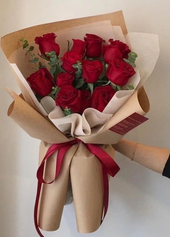Celebrate love and elegance with this stunning bouquet of vibrant red roses nestled among lush green foliage. Perfectly arranged with modern textures and presented in sleek black wrapping, this bouquet is a timeless gift for Valentine's Day or any romantic occasion. Handcrafted with care, it combines the beauty of nature with refined style for a truly unforgettable gesture. - Includes: Fresh red roses paired with premium mixed greenery. - Presentation: Wrapped in luxury paper and satin ribbon. - Ideal for: Valentine's Day Show your love with a bouquet as passionate as your feelings. Let us deliver this symbol of romance directly to their door! Please state in comment box classic or modern style, images shown of each.